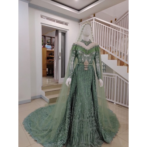 Terjual gaun pengantin hijau wardah.